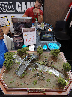 Alex from Warploque Miniatures was working on some figures for his ArcWorlde games next release "Troubles In the North". The current release "Battle For Troll Bridge" was represented by a fantastic model of a game set up.